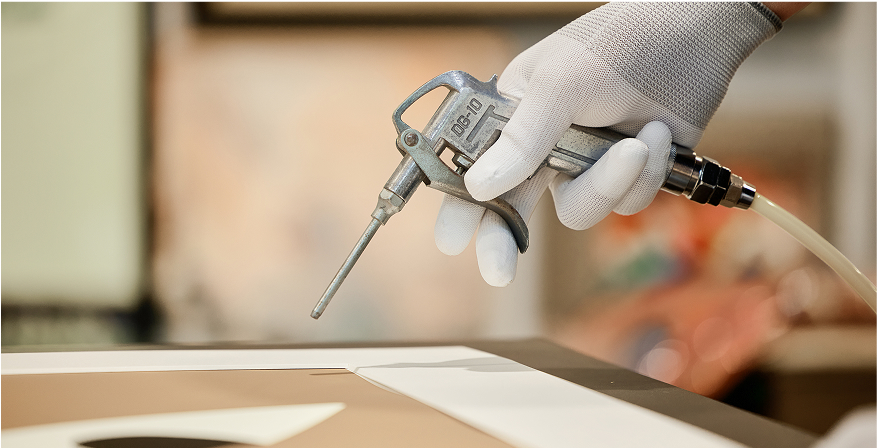 • When removing the artwork, gently hold the sides of the frame or the edges of the art piece—do not touch the center of the artwork.