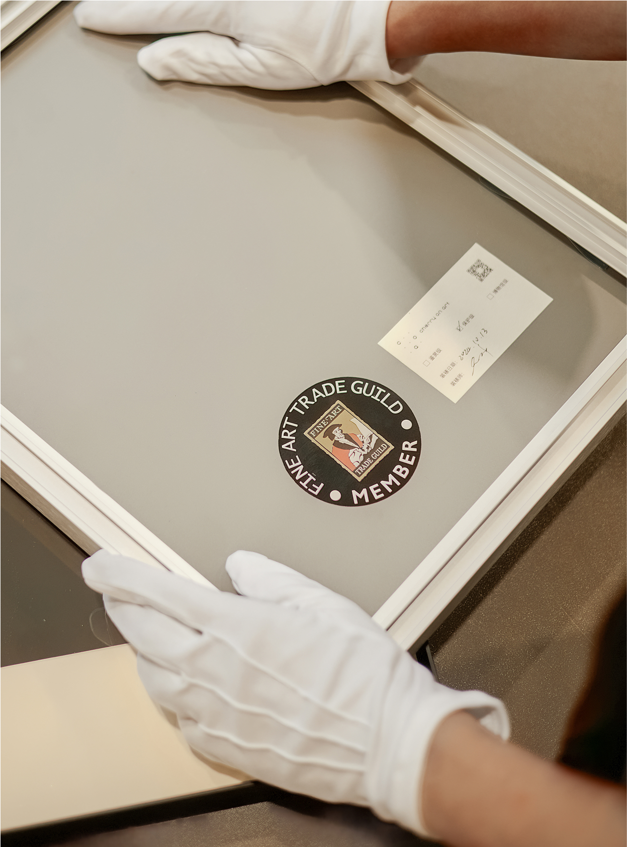 • If handling the unframed artwork, be sure to wear white gloves to avoid leaving fingerprints, sweat, or oils on the paper surface.